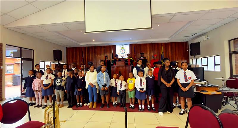 The matriculants and all students preparing for exams were then called to the front. Junior Soldier Company Guard Mandisa Simelane addressed them with uplifting words. She encouraged them to stay strong and focused as they approach this crucial time in their lives. “You have a whole community here,” she reminded them, “people who are cheering you on, praying for you, and believing in your success.” She further invited them to reach out to anyone within the Corps for guidance and support, reminding them that this journey does not have to be walked alone.